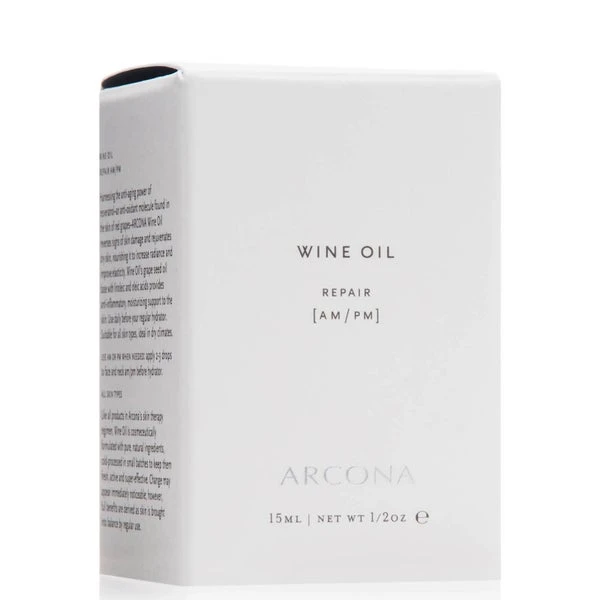 Harnessing the anti-aging power of resveratrol – an anti-oxidant molecule found in the skin of red grapes – ARCONA Wine Oil reverses signs of skin damage and rejuvenates dry skin, nourishing it to increase radiance and improve elasticity. Wine Oil’s grape seed oil base with linoleic and oleic acids provides anti-inflammatory, moisturizing support to the skin. Use daily before your regular hydrator. Suitable for all skin types, ideal in dry climates.