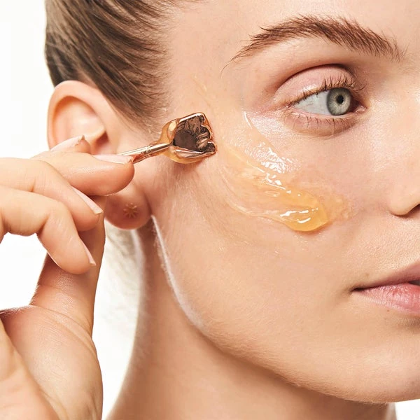 After cleansing the skin, scoop less than a pea-size amount of product using the tulip spatula (a little goes a long way!). Warm with fingertips to melt the honey-like texture into a serum, and gently press until the rich ointment sinks into your skin.