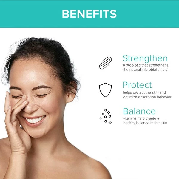 Lactobacillus/Panax Ginseng Root Extract Ferment: a plant-based probiotic that strengthens the natural microbial shield, rebalances the skin’s microbiota, improves the skin’s barrier function and enhances the overall quality and appearance of the skin
