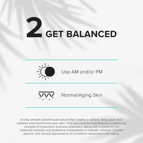 ClarityRx’s Get Balancedâ„¢ Probiotic Serum is a silky-smooth powerhouse serum that creates a radiant, dewy glow as it restores and harmonizes your skin. This luxurious serum features a balancing complex of hyaluronic acid and probiotics along with a blend of rich botanical extracts and protective antioxidants to hydrate, balance, and smooth skin texture while reducing the appearance of conditions associated with aging.