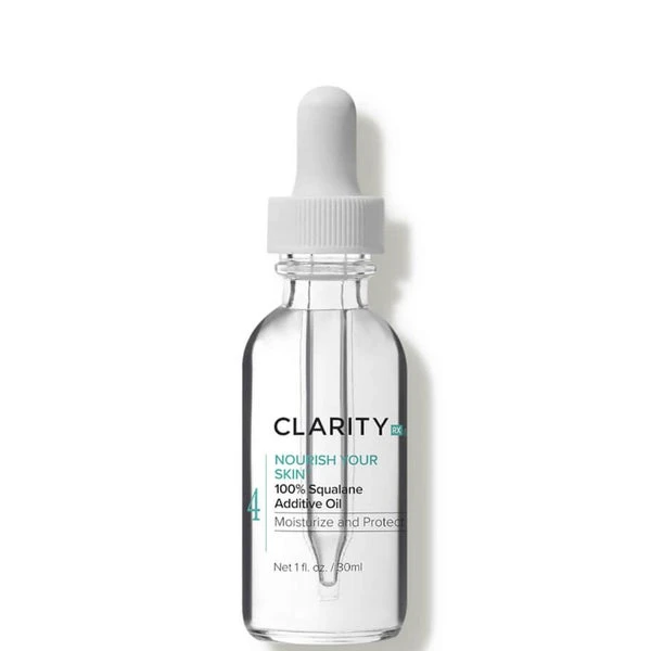 ClarityRx Nourish Your Skin 100% Squalane Additive Oil is a quick-absorbing oil that penetrates deeply to promote healing, hydration and protection. The refined oil enhances your skin’s ability to shield itself from harsh environmental aggressors, while also increasing oxygen flow into the skin.