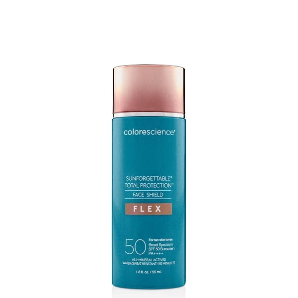 Sunforgettable® Total Protection™ Face Shield Flex SPF 50 delivers powerful environmental protection and immediately evens skin tone for a healthy, natural appearance. Available in four uniquely flexible shades for a range of skin tones, it features innovative, tone-adapting pigments that offer medium, buildable color coverage with a natural finish.