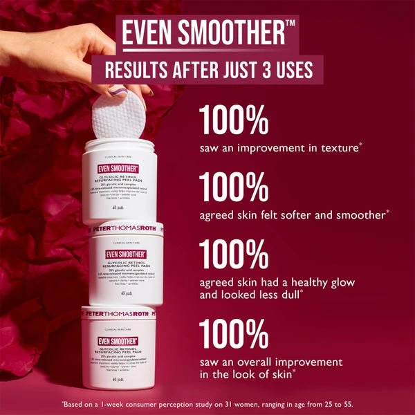 Give your resurfacing routine a boost with the Even Smoother Glycolic Retinol Resurfacing Peel Pads. Provides transformative results immediately and over time. Highpotency 20% Glycolic Acid Complex and 1.5%