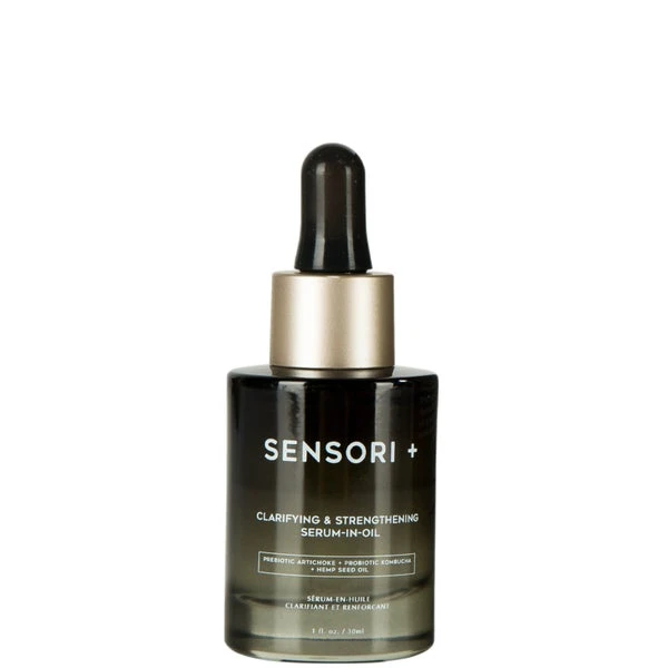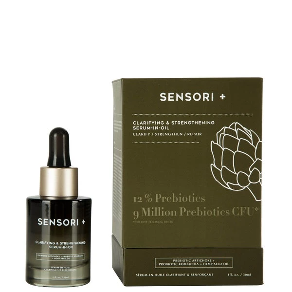 Improve skin texture and tone over time with SENSORI+ Clarifying & Strengthening Serum-in-Oil, a bi-phase formula of prebiotics and probiotics suspended in a hemp seed oil base to soothe micro-inflammation triggered by factors of urban life.